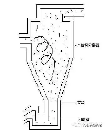 在離心力作用下,煙氣中的固體顆粒被拋向分離器筒壁,并沿壁面下滑進入連接分離器的立管中。通過回料閥進入爐膛。煙氣入煙道。