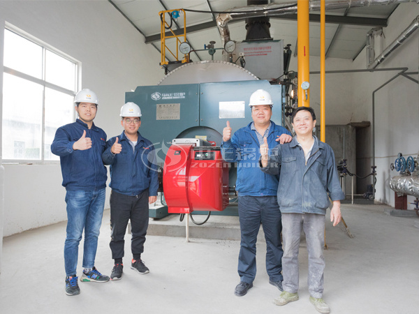 其中,如皋市丁堰紡織有限公司在2017年7月向中正鍋爐訂購(gòu)了一臺(tái)4噸的WNS系列燃?xì)?a href=/product/steam-boiler.html target=_blank class=infotextkey>蒸汽鍋爐(WNS4-1.25-Q),一直以來(lái)都運(yùn)行穩(wěn)定。此次,中正工程師進(jìn)入鍋爐房現(xiàn)場(chǎng),從鍋爐外觀到內(nèi)部運(yùn)行進(jìn)行了一系列的檢查與保養(yǎng),詳細(xì)記錄了鍋爐運(yùn)行的相關(guān)數(shù)據(jù)。在檢查過(guò)程中,中正鍋爐工程師通過(guò)觀察火焰顏色和煙氣分析儀的測(cè)量,發(fā)現(xiàn)鍋爐排煙處O2的含量偏大,立即對(duì)燃燒器的風(fēng)氣配比進(jìn)行了調(diào)節(jié),直至煙氣中O2和CO含量都降到典型值。
